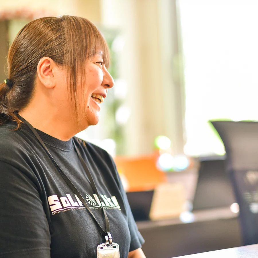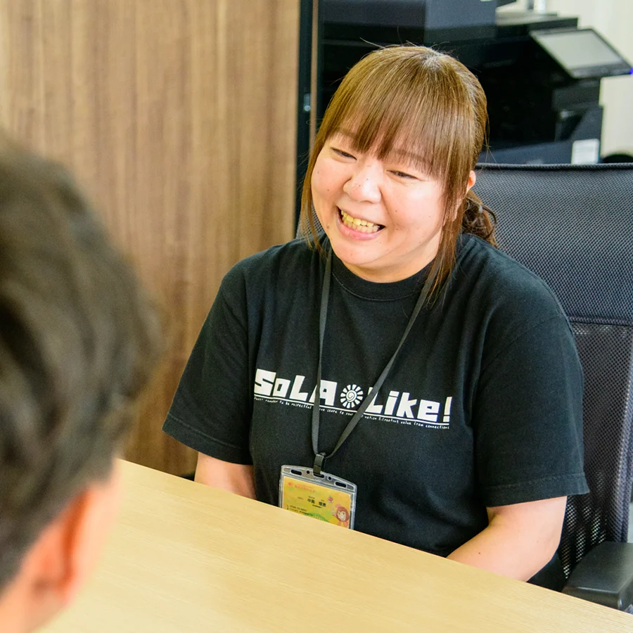 訪問介護という仕事柄、普段はそれぞれのスタッフが訪問先に出ていることが多いので、事務所に全員が集まる時間は少ないですが、ミーティング等で集まったときに楽しいことや大変なこと、ときには愚痴なども、気兼ねなく話ができたり意見交換ができているので、溜め込まずに働けているなと感じます。